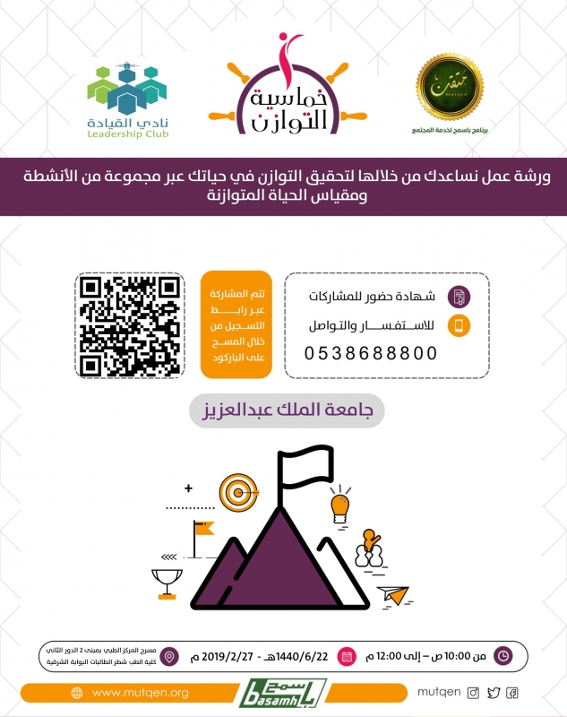 اسم الفعالية :برنامج ( خماسية التوازن ) لطالبات جامعة الملك عبدالعزيز ( مخصصة للذكر )