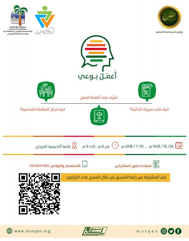 اسم الفعالية :برنامج (أعمل بوعي) بنادي تكوين بمركز حي الصفا النموذجي ( مخصصة للذكر )